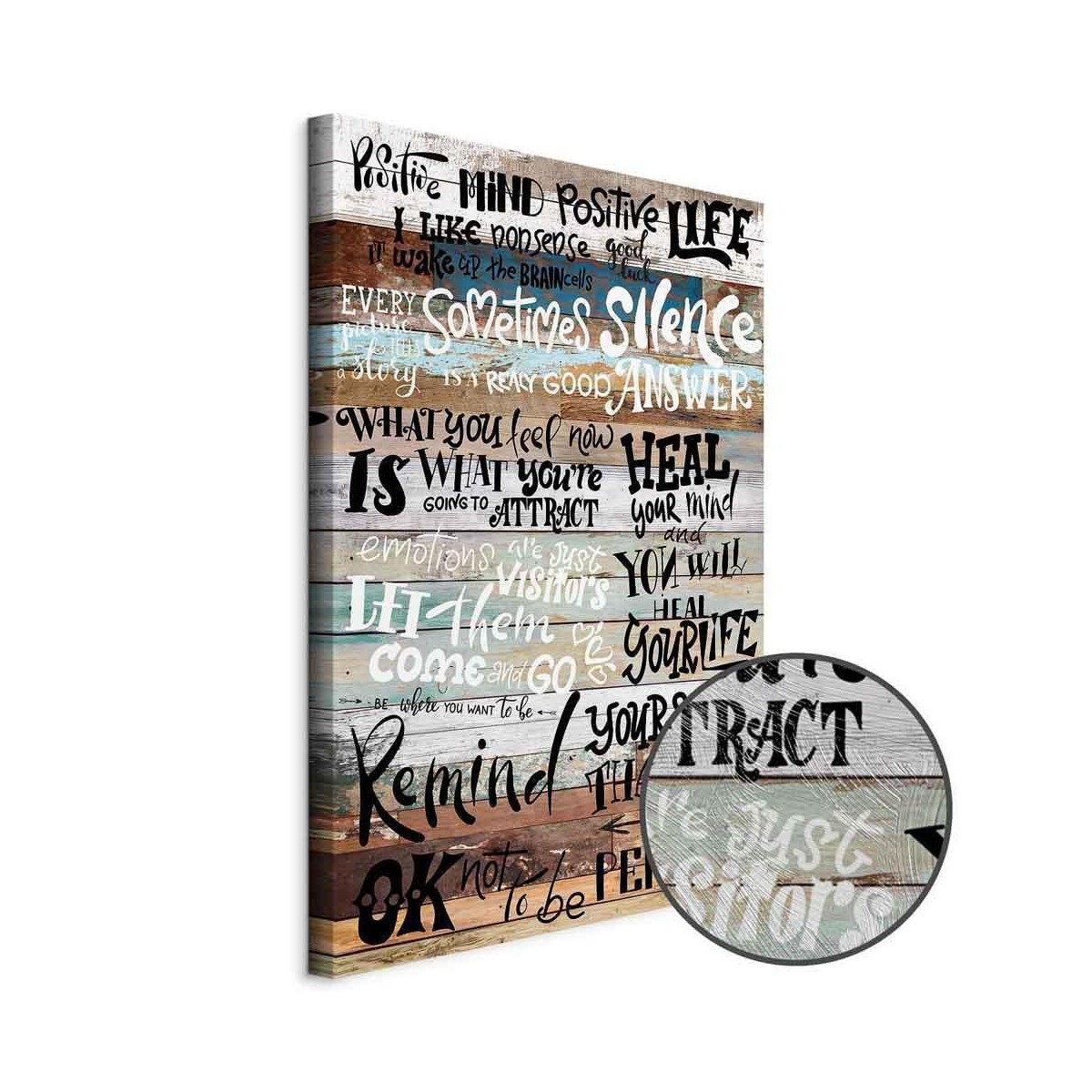 Bilder Wohnzimmer Unsere Bilder sind sicher und geruchsneutral und eignen sich daher ideal für Kinderzimmer. Die Größe wird Ihr Kind sicher beeindrucken! Bilder für Schlafzimmer sind ein echter Blickfang, genauso wie Bilder Wohnzimmer. Dekorieren Sie die Wände in Ihrem privaten Bereich mit einem Bild "Leinwandbild - Positive Affirmations". Wir empfehlen Bilder für Schlafzimmer , die Sie beruhigen und in eine erholsame Stimmung versetzen. Bilder aus unserer Kollektion werden Ihrem Interieur eine außergewöhnliche Atmosphäre verleihen. Unabhängig vom Raum schaffen auch Kunst Bilder eine gemütliche Atmosphäre für die Gäste. Massive Holzrahmen unterstreichen den einzigartigen Charakter der Schlafzimmerbilder, und ein schneller und sicherer Versand ist ein weiterer Vorteil, der für diese Wanddekorationen spricht Leinwandbilder sind in fünf Varianten erhältlich, sodass jeder Kunde die perfekte Option für seine Bedürfnisse findet.Die Variante auf Strukturleinwand (Standard) ist eine universelle Dekoration, die das Haushaltsbudget nicht belastet.Für Liebhaber edler Materialien ist ein Druck auf italienischer Leinwand aus 100 % Baumwolle die ideale Wahl.Und für Fans der Malerei? Hier überzeugt die außergewöhnliche Premium-Print-Technik – ein Bild, das auf Strukturleinwand gedruckt und von Hand mit einer Schicht transparenten Gels überzogen wird, die die Pinselstriche eines Künstlers imitiert – ein „wie gemalt“-Effekt, aber zu einem günstigeren Preis.Die Variante im soliden Holzrahmen des Typs American Box mit Tiefeneffekt (zwei Rahmenfarben zur Auswahl, Motiv auf Strukturleinwand gedruckt) bietet eine klassische Lösung in neuer Form.Das Akustikbild (Druck auf Strukturleinwand mit einer zusätzlichen Schicht schallabsorbierendem Schaumstoff) ist dagegen ein Volltreffer für alle, die Ästhetik mit Funktionalität verbinden möchten.Zwar sind die beiden letzten Optionen nur für bestimmte Größen von einteiligen Bildern verfügbar, doch bei allen Varianten legen wir GRATIS die erforderliche Anzahl an Haken und Nägeln zur Montage bei.