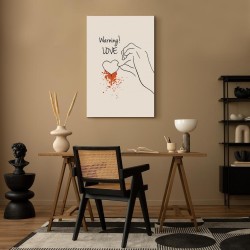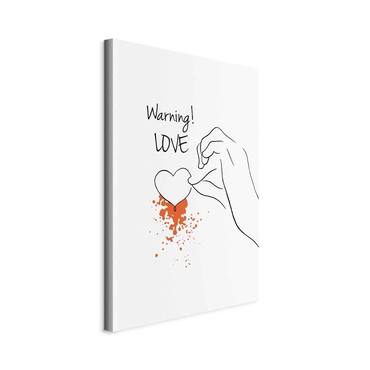 Bilder Wohnzimmer. Dekorieren Sie die Wände in Ihrem privaten Bereich mit einem Bild "Leinwandbild - Warning! Love (1 Part) Vertical". Wir empfehlen