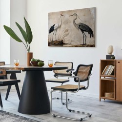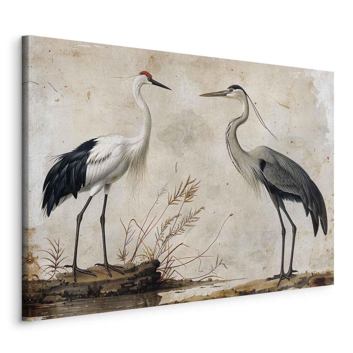 Bilder Wohnzimmer. Dekorieren Sie die Wände in Ihrem privaten Bereich mit einem Bild "Leinwandbild - Birds from an old engraving - vintage-style illustration depicting a heron and a crane". Wir empfehlen