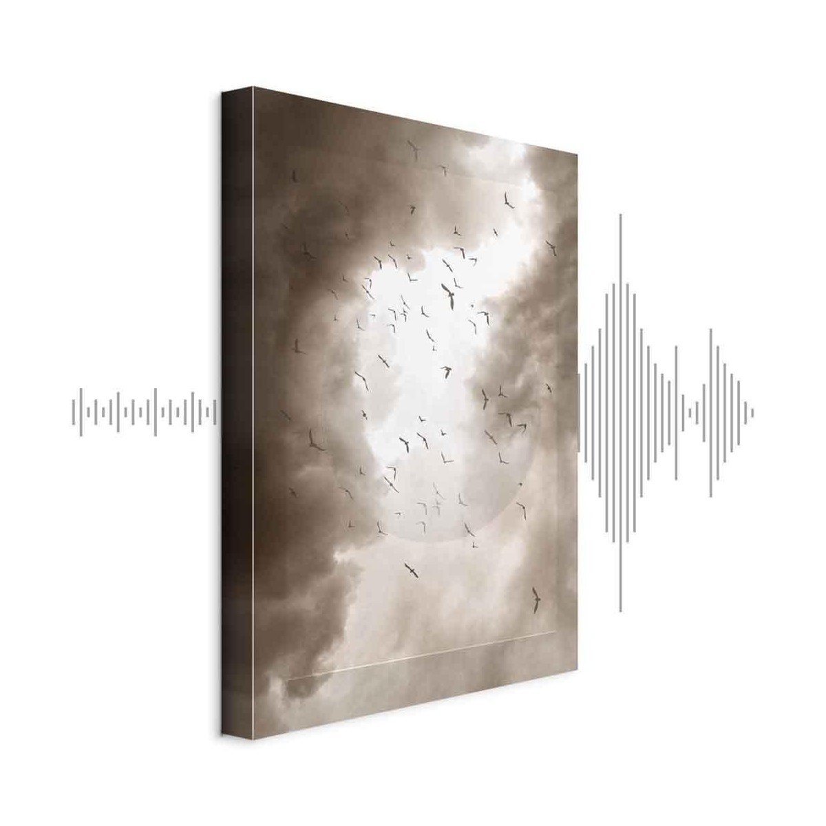 Bilder Wohnzimmer. Dekorieren Sie die Wände in Ihrem privaten Bereich mit einem Bild "Leinwandbild - Birds in the Clouds (1 Part) Vertical". Wir empfehlen