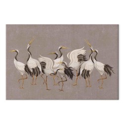 Bilder Wohnzimmer. Dekorieren Sie die Wände in Ihrem privaten Bereich mit einem Bild "Leinwandbild - Crane dance – bright silhouettes of birds against a warm grey background with texture". Wir empfehlen