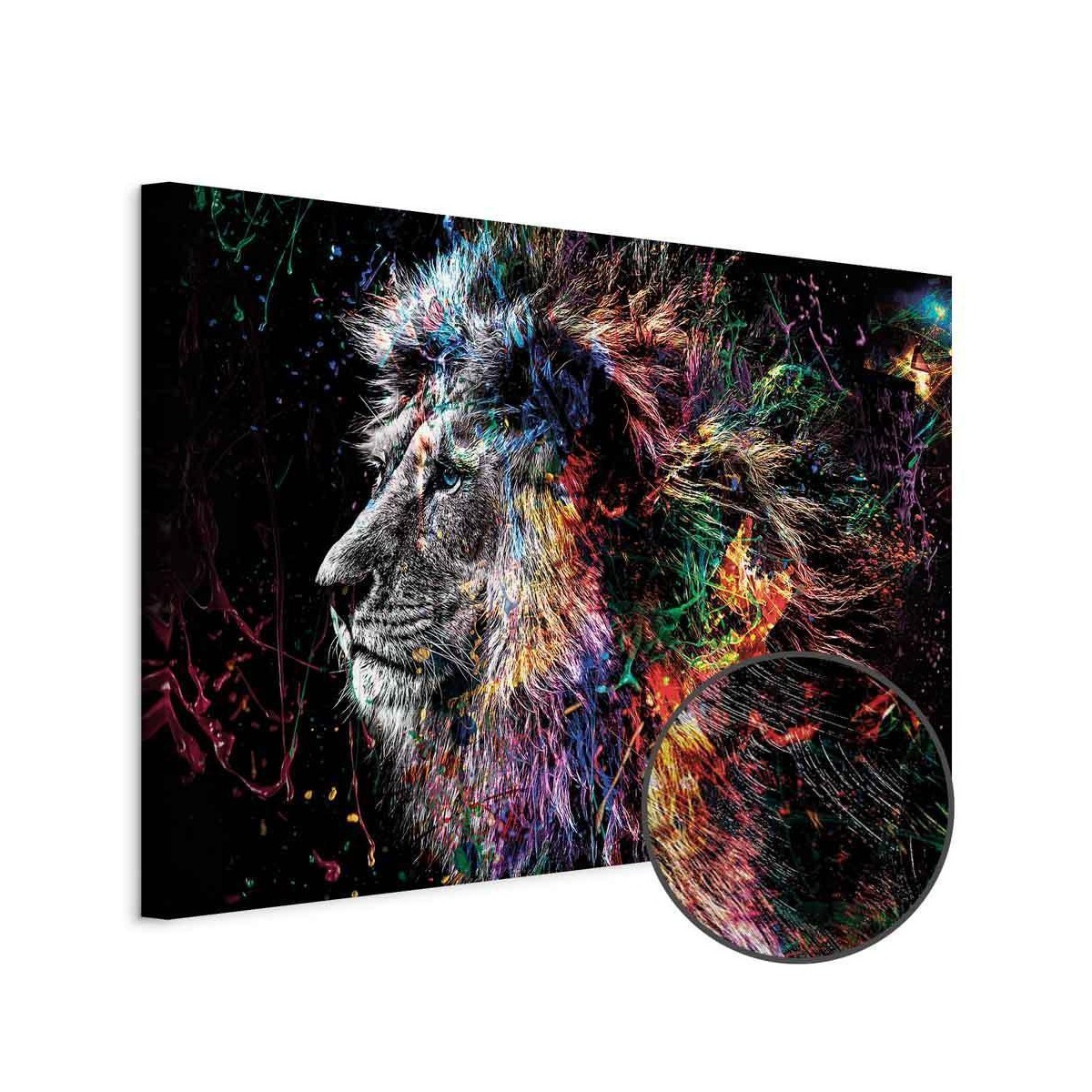 Bilder Wohnzimmer. Dekorieren Sie die Wände in Ihrem privaten Bereich mit einem Bild "Leinwandbild - Crazy Lion (1 Part) Wide". Wir empfehlen