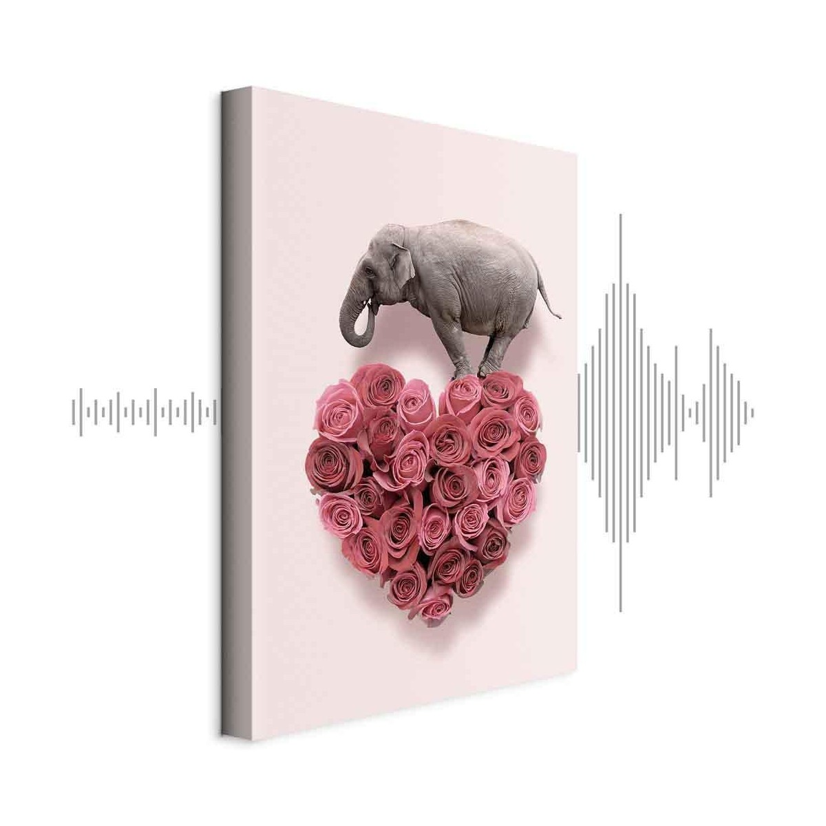 Bilder Wohnzimmer. Dekorieren Sie die Wände in Ihrem privaten Bereich mit einem Bild "Leinwandbild - Elephant Lover (1-part) - Elephant Amid Pink Flowers". Wir empfehlen