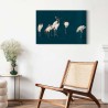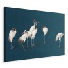 Bilder Wohnzimmer. Dekorieren Sie die Wände in Ihrem privaten Bereich mit einem Bild "Leinwandbild - Evening by the pond - a group of cranes drawn in dry pastel on a dark turquoise background". Wir empfehlen