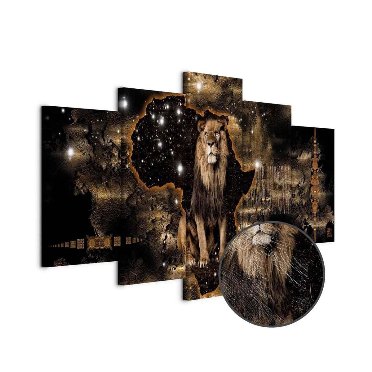 Bilder Wohnzimmer. Dekorieren Sie die Wände in Ihrem privaten Bereich mit einem Bild "Leinwandbild - Golden Lion (5 Parts) Wide". Wir empfehlen