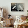 Bilder Wohnzimmer. Dekorieren Sie die Wände in Ihrem privaten Bereich mit einem Bild "Leinwandbild - Herons and cherry blossoms - oriental-style illustration depicting birds". Wir empfehlen
