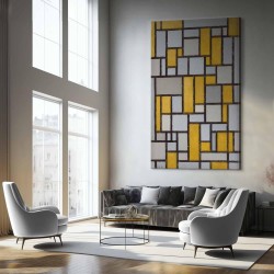 Entdecken Sie den neuen Dekotrend mit unseren innovativen faltbaren großen Leinwandbildern im XXL-Format. Diese einzigartigen Produkte kombinieren modernes Design, höchste Materialqualität und eine vollständig eigenständige DIY-Montageweise und bieten so eine einzigartige Lösung für alle Liebhaber origineller Arrangements. Dank der durchdachten Konstruktion aus Basisrahmen und Leinwand mit aufgedrucktem Motiv können wir auch sehr große Bilder sicher und kosteneffizient liefern. Unser Unterscheidungsmerkmal ist die außergewöhnliche Leichtigkeit bei gleichzeitig voller Rahmenstabilität, die Langlebigkeit gewährleistet und die Montage an jeder Wandart ermöglicht. Die Schritt-für-Schritt-Anleitung stellt sicher, dass jede Kundin und jeder Kunde die Montage problemlos bewältigt. "Wandbild XXL - Piet Mondrian – Composition with Grid 27" ist somit die perfekte Option für Personen, die großformatige Kunstwerke schätzen, die sich ohne professionelle Hilfe leicht montieren lassen.