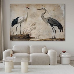 Entdecken Sie den neuen Dekotrend mit unseren innovativen faltbaren großen Leinwandbildern im XXL-Format. Diese einzigartigen Produkte kombinieren modernes Design, höchste Materialqualität und eine vollständig eigenständige DIY-Montageweise und bieten so eine einzigartige Lösung für alle Liebhaber origineller Arrangements. Dank der durchdachten Konstruktion aus Basisrahmen und Leinwand mit aufgedrucktem Motiv können wir auch sehr große Bilder sicher und kosteneffizient liefern. Unser Unterscheidungsmerkmal ist die außergewöhnliche Leichtigkeit bei gleichzeitig voller Rahmenstabilität, die Langlebigkeit gewährleistet und die Montage an jeder Wandart ermöglicht. Die Schritt-für-Schritt-Anleitung stellt sicher, dass jede Kundin und jeder Kunde die Montage problemlos bewältigt. "Wandbild XXL - Birds from an old engraving - vintage-style illustration depicting a heron and a crane" ist somit die perfekte Option für Personen, die großformatige Kunstwerke schätzen, die sich ohne professionelle Hilfe leicht montieren lassen.