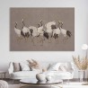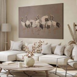 Entdecken Sie den neuen Dekotrend mit unseren innovativen faltbaren großen Leinwandbildern im XXL-Format. Diese einzigartigen Produkte kombinieren modernes Design, höchste Materialqualität und eine vollständig eigenständige DIY-Montageweise und bieten so eine einzigartige Lösung für alle Liebhaber origineller Arrangements. Dank der durchdachten Konstruktion aus Basisrahmen und Leinwand mit aufgedrucktem Motiv können wir auch sehr große Bilder sicher und kosteneffizient liefern. Unser Unterscheidungsmerkmal ist die außergewöhnliche Leichtigkeit bei gleichzeitig voller Rahmenstabilität, die Langlebigkeit gewährleistet und die Montage an jeder Wandart ermöglicht. Die Schritt-für-Schritt-Anleitung stellt sicher, dass jede Kundin und jeder Kunde die Montage problemlos bewältigt. "Wandbild XXL - Crane dance – bright silhouettes of birds against a warm grey background with texture" ist somit die perfekte Option für Personen, die großformatige Kunstwerke schätzen, die sich ohne professionelle Hilfe leicht montieren lassen.
