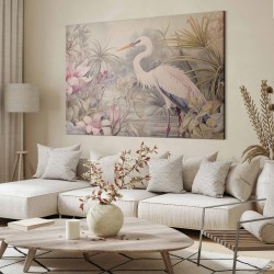 Interessieren Sie sich für große Leinwandbilder für Ihr Wohnzimmer? Wissen Sie nicht, wie Sie die Wandflächen in Ihrem Büro gestalten sollen? Oder lieben Sie einfach DIY-Projekte? Wenn ja, wird unser einzigartiger "Wandbild XXL - Heron wading in a pond - illustration in bright colours" Ihre Erwartungen erfüllen. XXL-Leinwandbilder eignen sich ideal als Blickfang in geräumigen Räumen oder Innenräumen mit hohen Decken, doch die große Auswahl an Größen macht sie auch zur Antwort für alle, die dekorative Elemente gern selbst erstellen und montieren. XXL-Bilder sind perfekt für alle Räume, in denen Ästhetik und Funktionalität Hand in Hand gehen. Dank der leichten Reinigung ist das XXL-Wandbild eine ausgezeichnete Wahl für stark frequentierte Orte wie Cafés oder Konferenzräume. In unserer umfangreichen Kollektion finden sowohl Liebhaber moderner Abstraktionen in ungewöhnlichen Farben, Panoramen der schönsten Metropolen als auch Fans klassischer Reproduktionen, Stillleben oder atemberaubender Landschaften ihr Traum-Motiv.